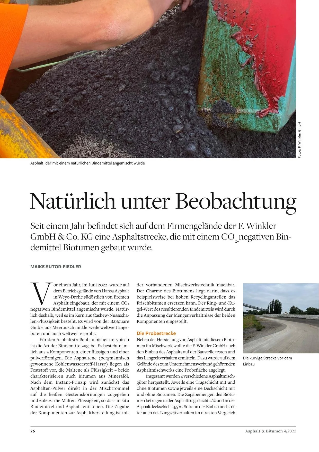 Lesen Sie hier in der Fachzeitschrift Asphalt & Bitumen (Ausgabe 04/2023) was Cashew-Nüsse mit Asphalt zu tun haben und wie mit einem neuen Bindemittel der CO2 Ausstoß verringert werden kann.